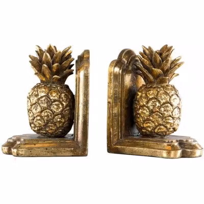 Ge ditt hem en tropisk touch med vårt bokstöd Ananas Guld från A Lot Decoration. Dessa stiliga bokstöd i form av två ananasfrukter i glänsande guldfärg är både funktionella och dekorativa.