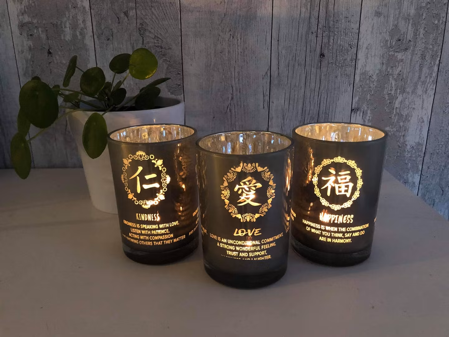 Dessa dekorativa ljuslyktor är perfekta för att skapa en mysig atmosfär eller som omtänksamma gåvor till vänner och familj. Låt dem sprida värme och positiva budskap i varje rum!
