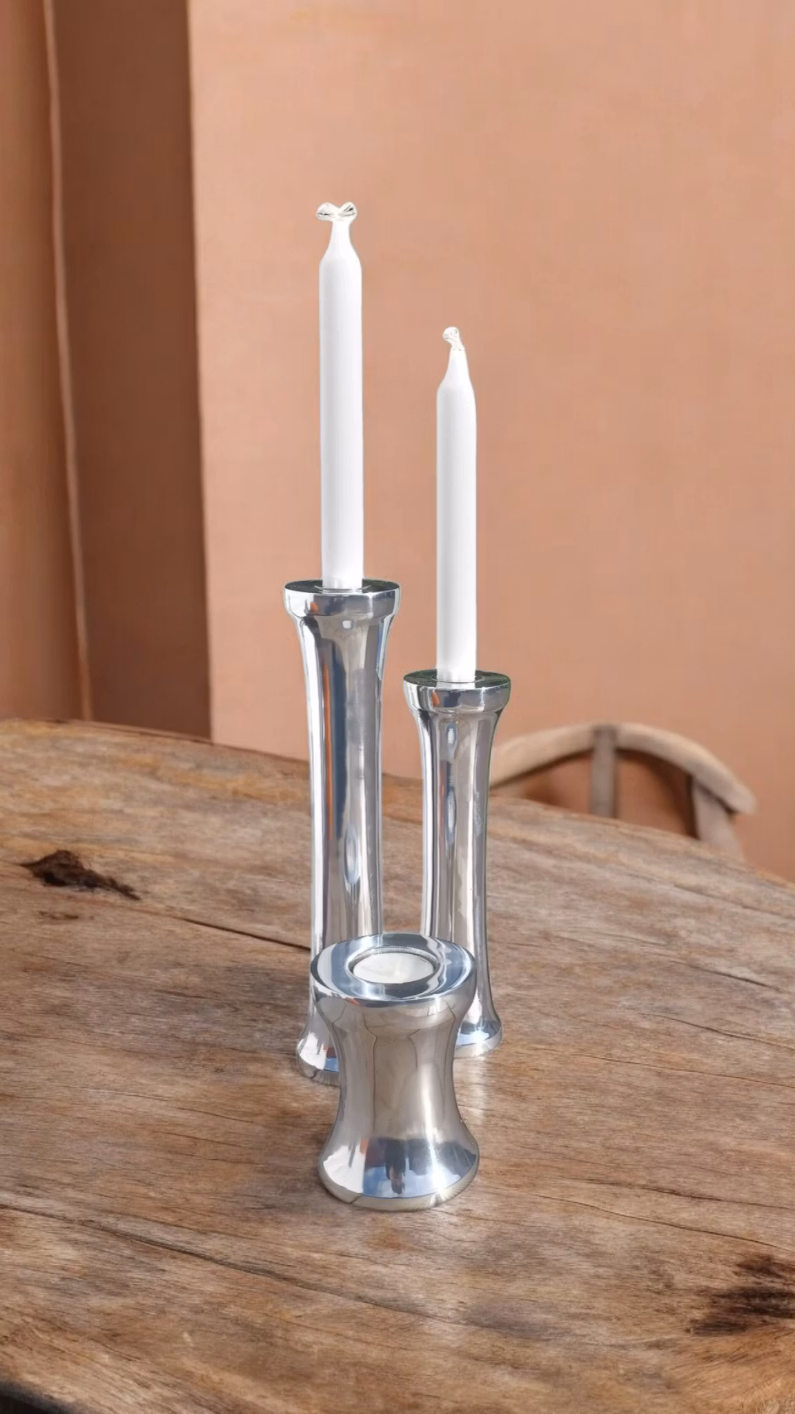 Den unika konkava formen skapar en iögonfallande effekt, medan den silvriga finishen ger en lyxig känsla. Använd ljusstaken för kronljus och skapa en varm och inbjudande atmosfär under middagar, fester eller avkopplande kvällar.