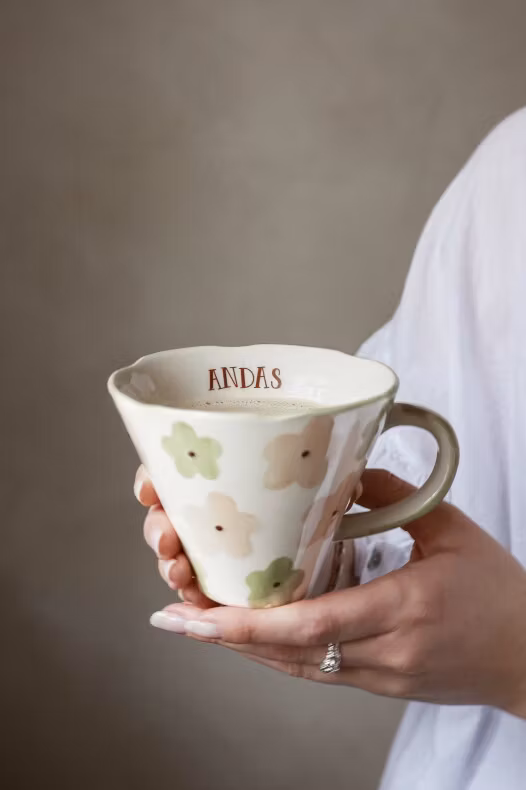Denna ljuvliga mugg är tillverkad i hållbar stengods – perfekt för kaffe, te eller din favoritdryck.